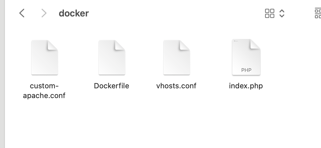 가장 기본페이지가 될 index.php와 Dockerfile 외에 custom-apache.conf 파일과 vhost.conf 파일도 추가했다.